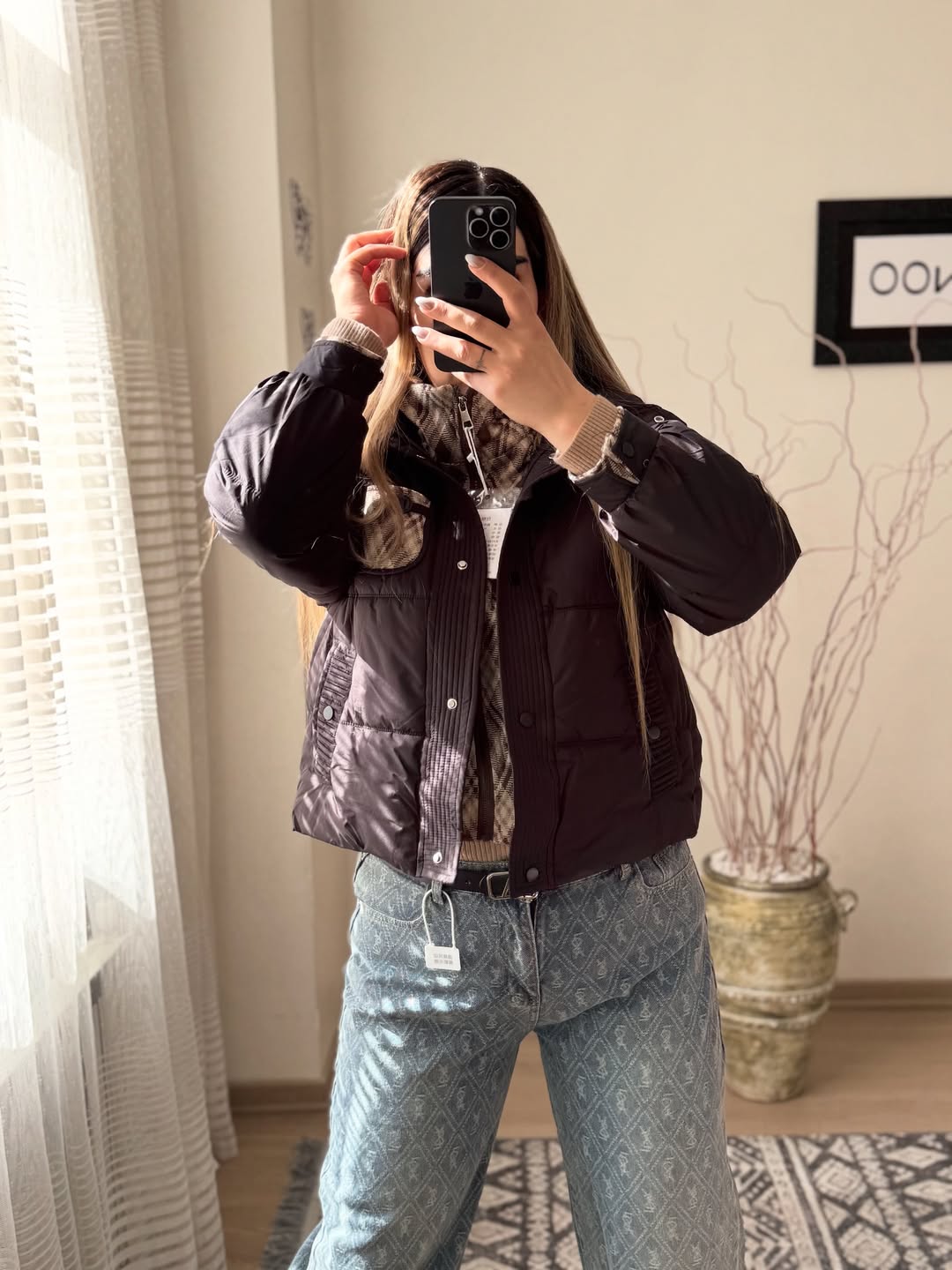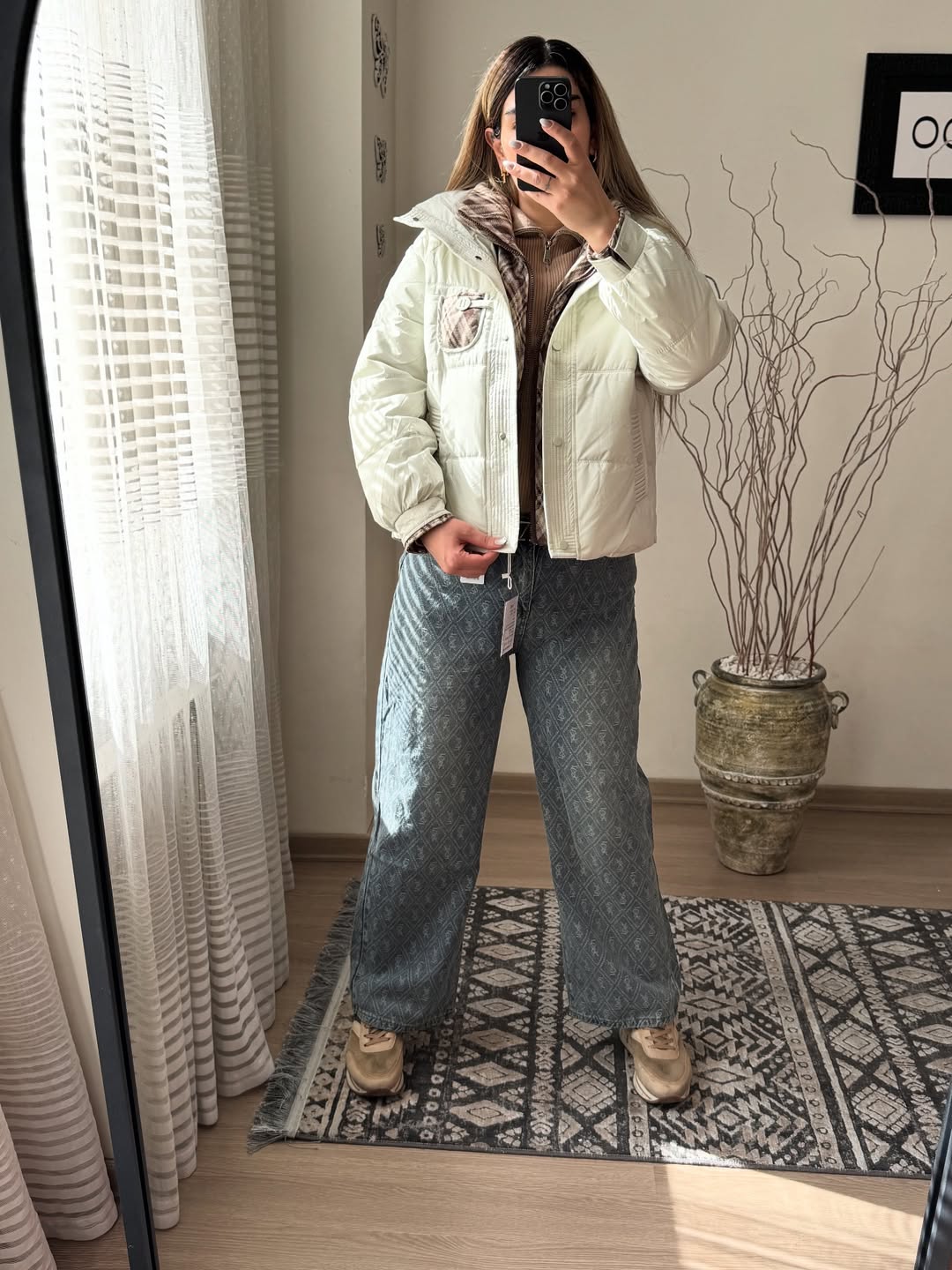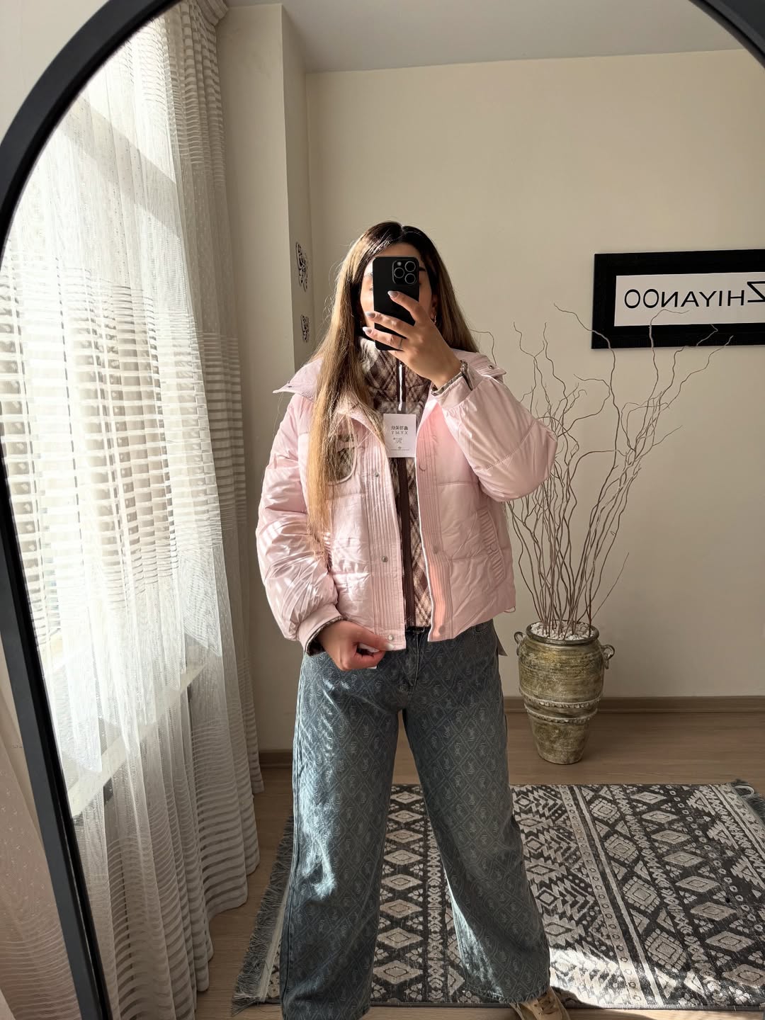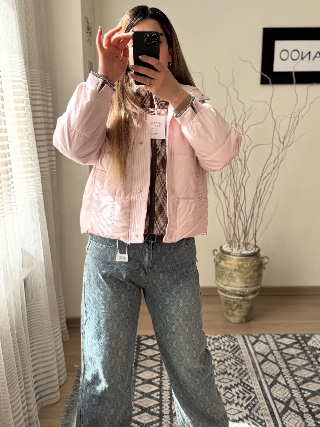 کاپشن وارداتی برفین با چهار رنگ کرم، استخوانی، مشکی، سبز ماچا و صورتی پاستیلی، آستر دار، بدون کلاه، جلوزیپ و دکمه. مناسب تا سایز 48.