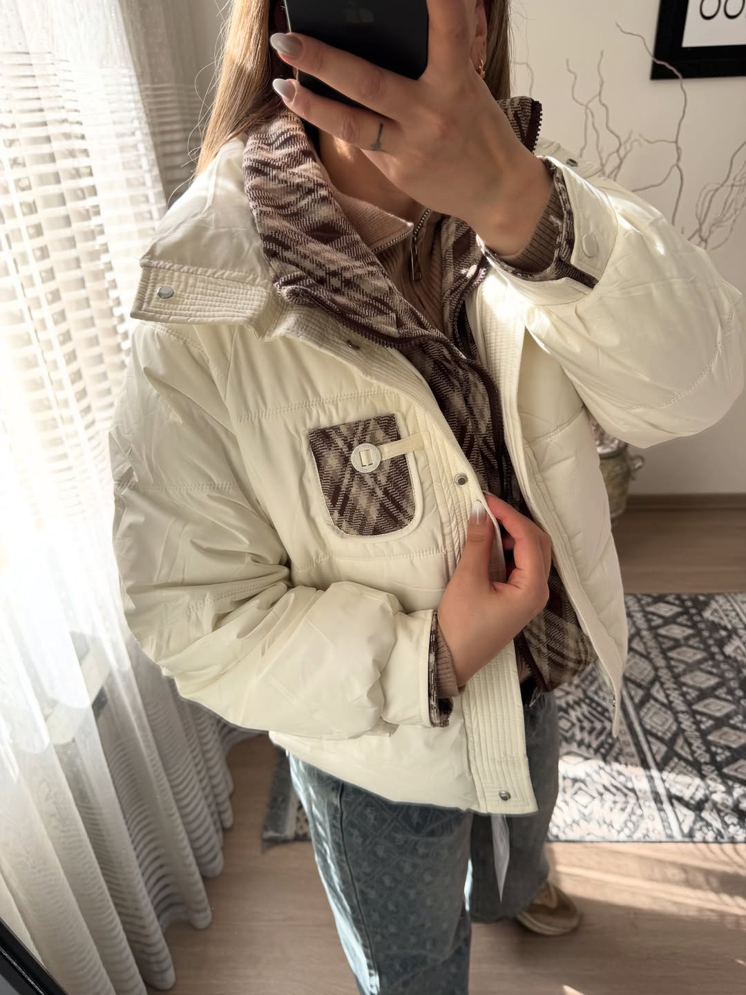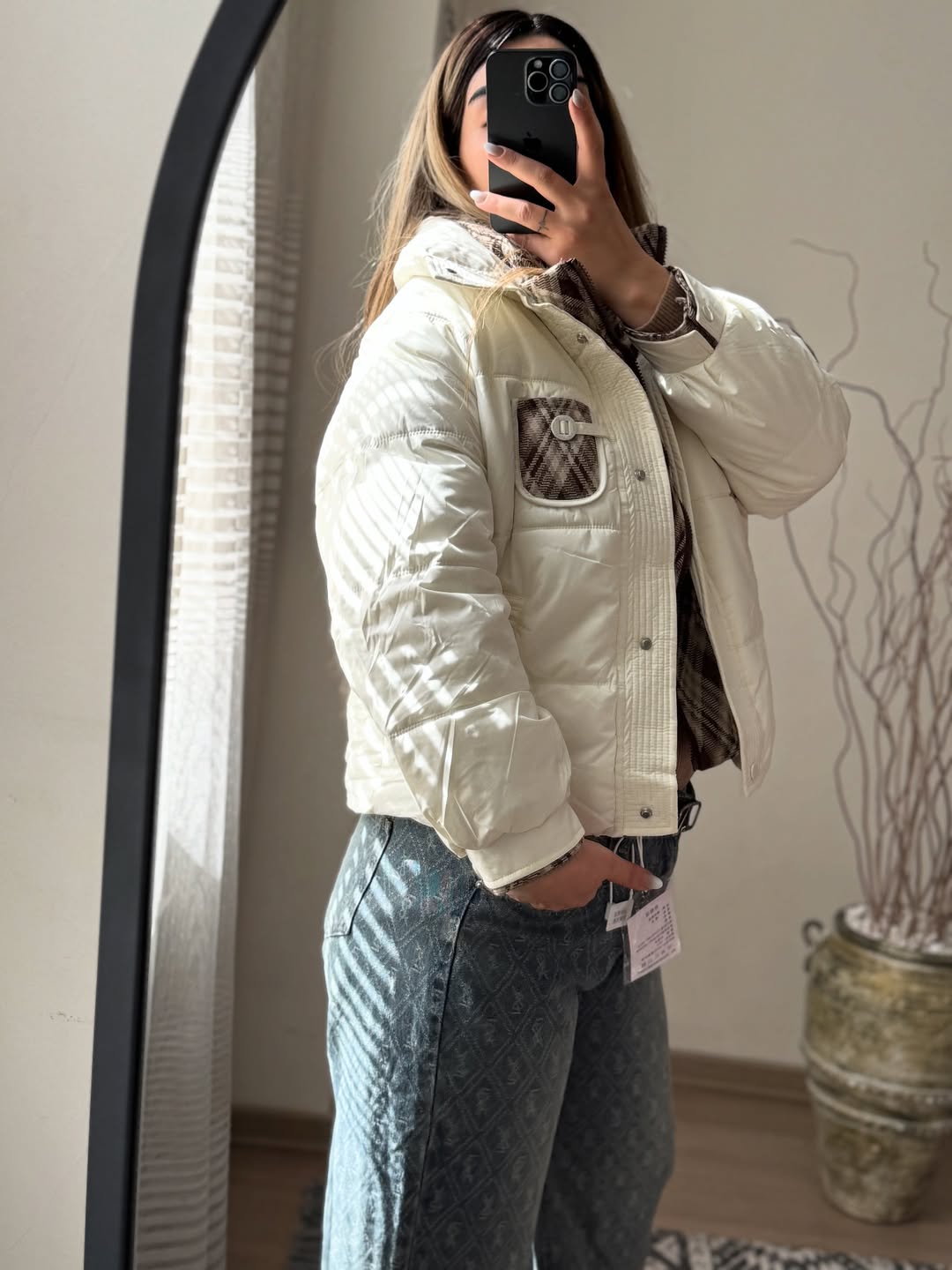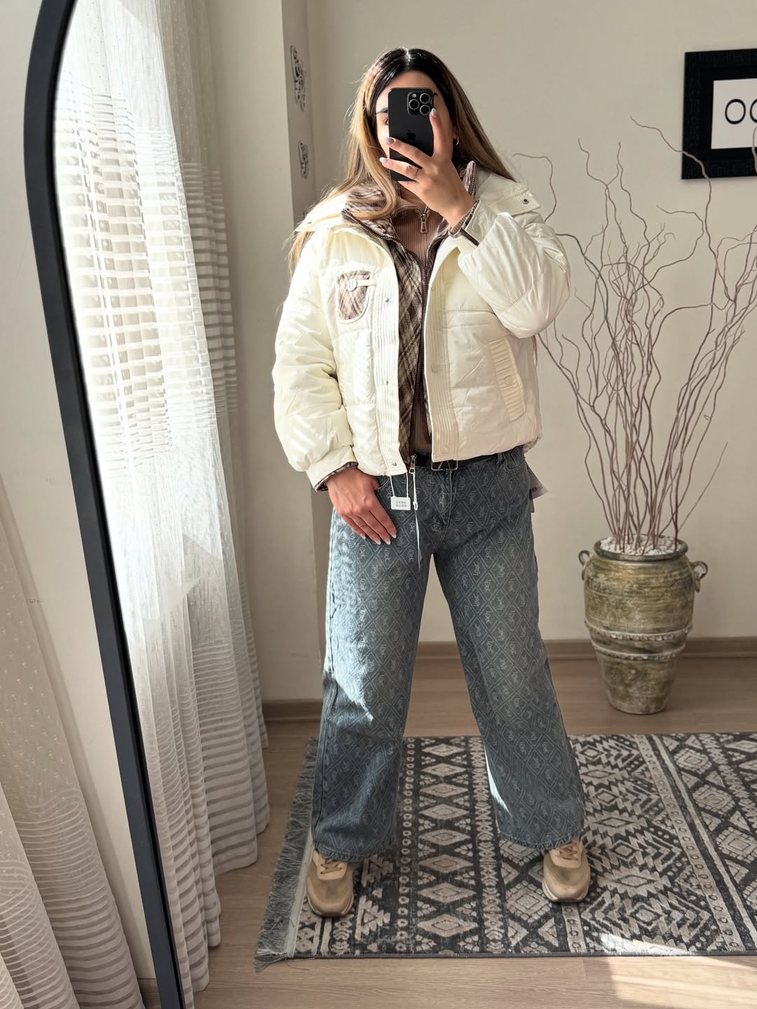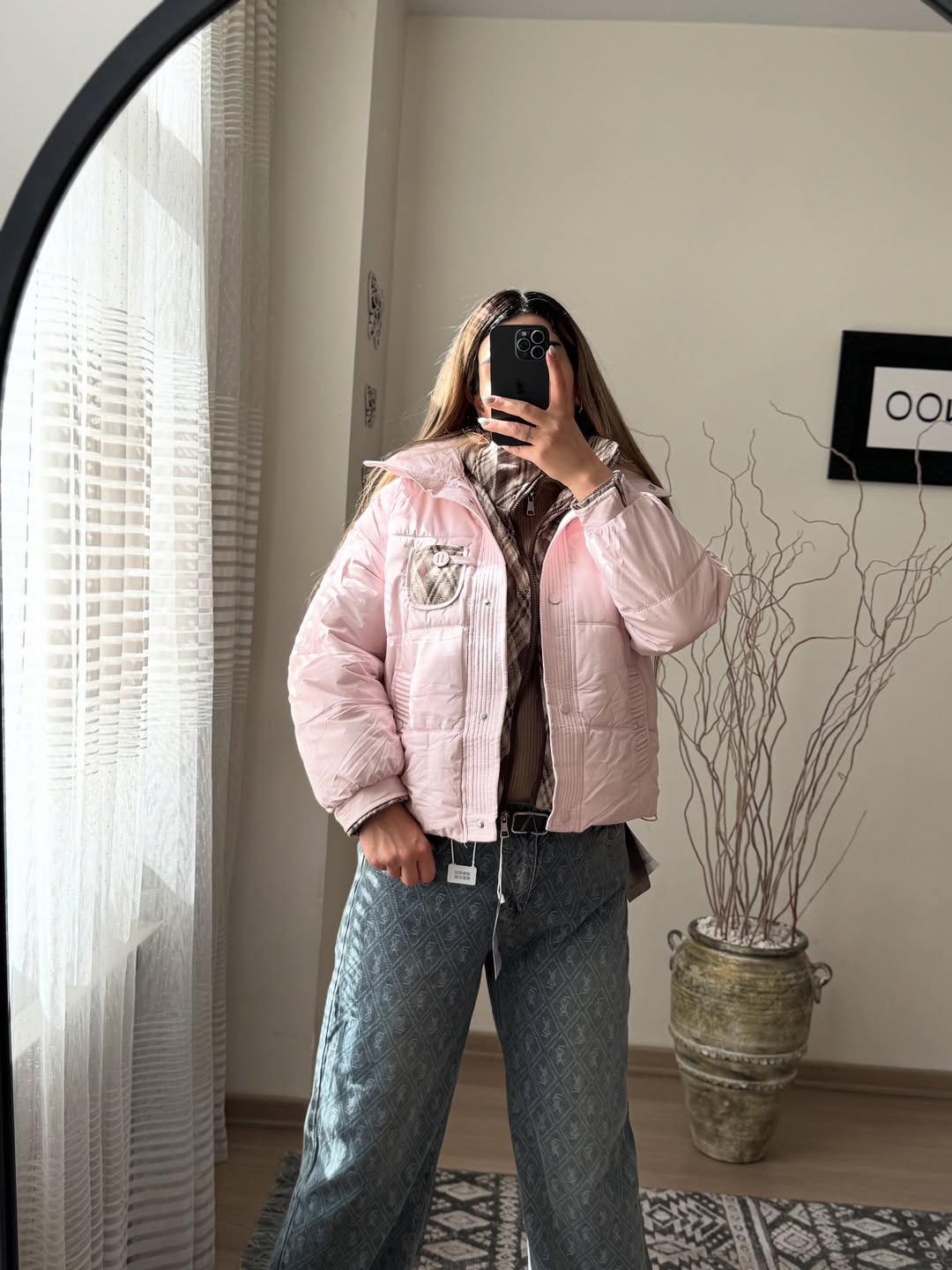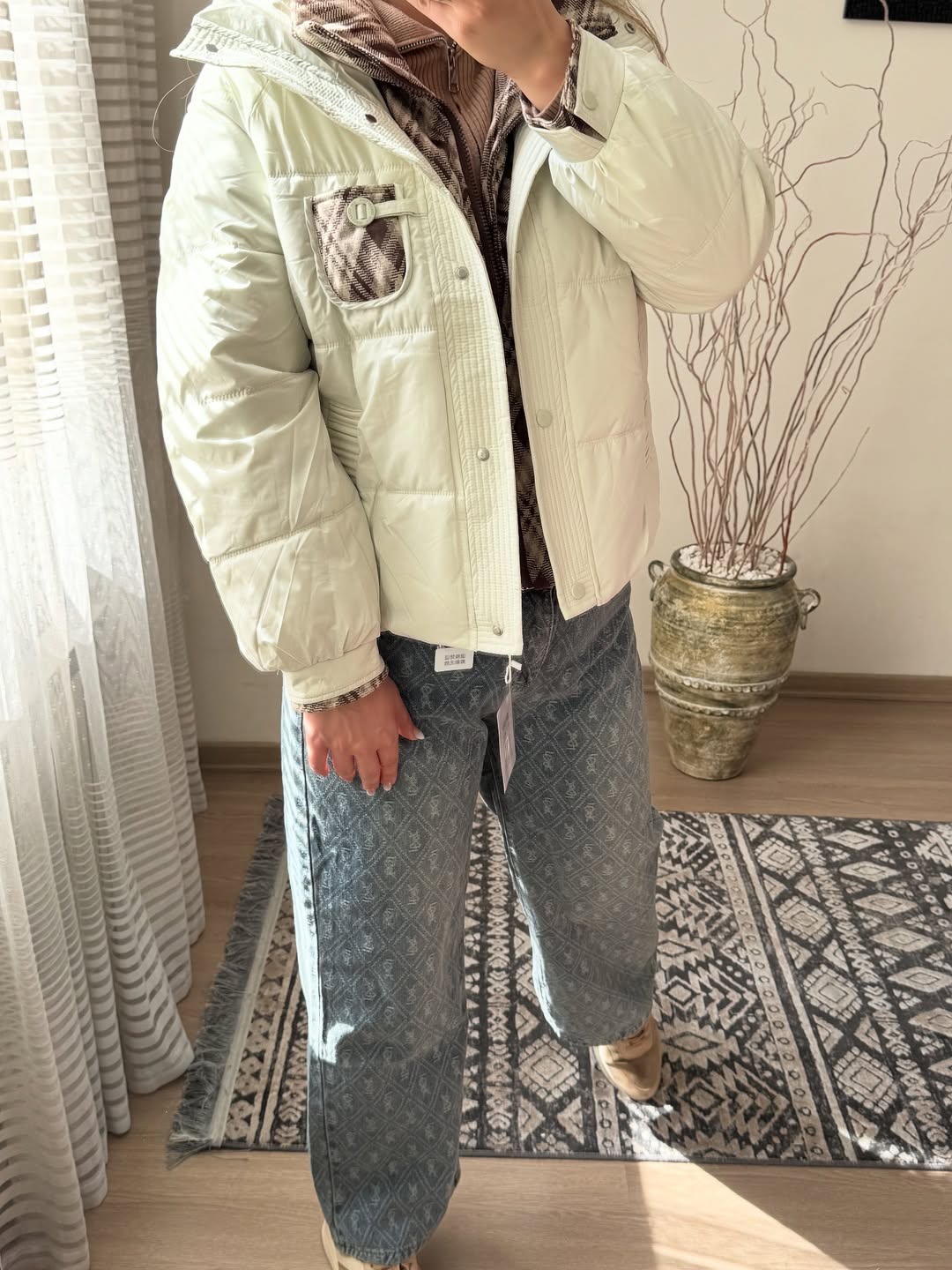 کاپشن وارداتی برفین با چهار رنگ کرم، استخوانی، مشکی، سبز ماچا و صورتی پاستیلی، آستر دار، بدون کلاه، جلوزیپ و دکمه. مناسب تا سایز 48.
