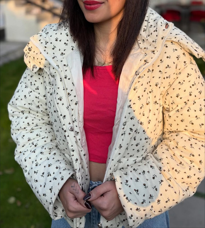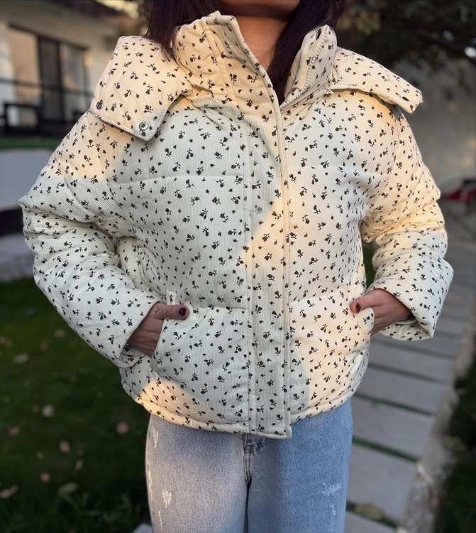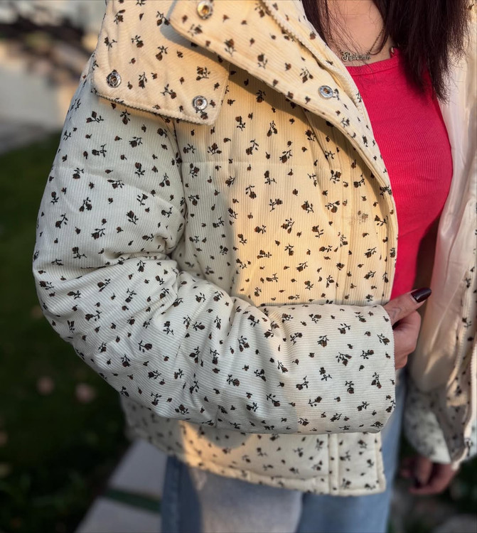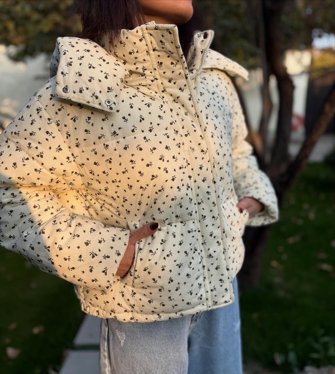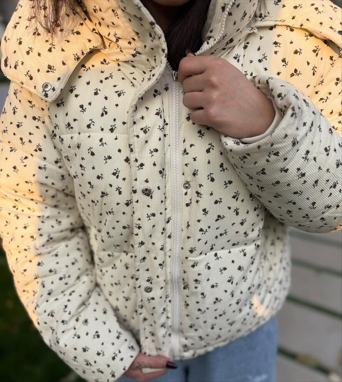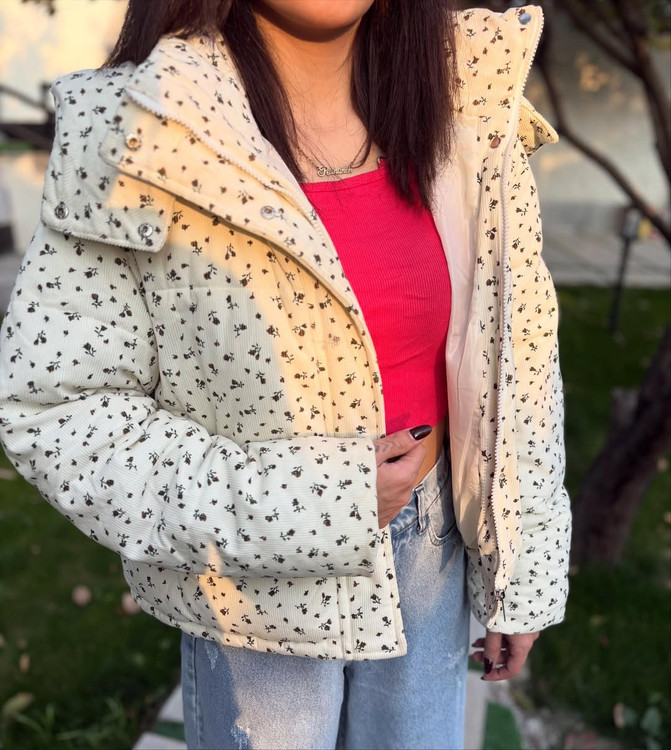 کاپشن وارادتی پینترستی با طراحی جذاب گل گلی که داره خاص و یونیکه آستر دار / جلو کار زیپ و دکمه تک رنگ پایین این کاپشن گتر داره
